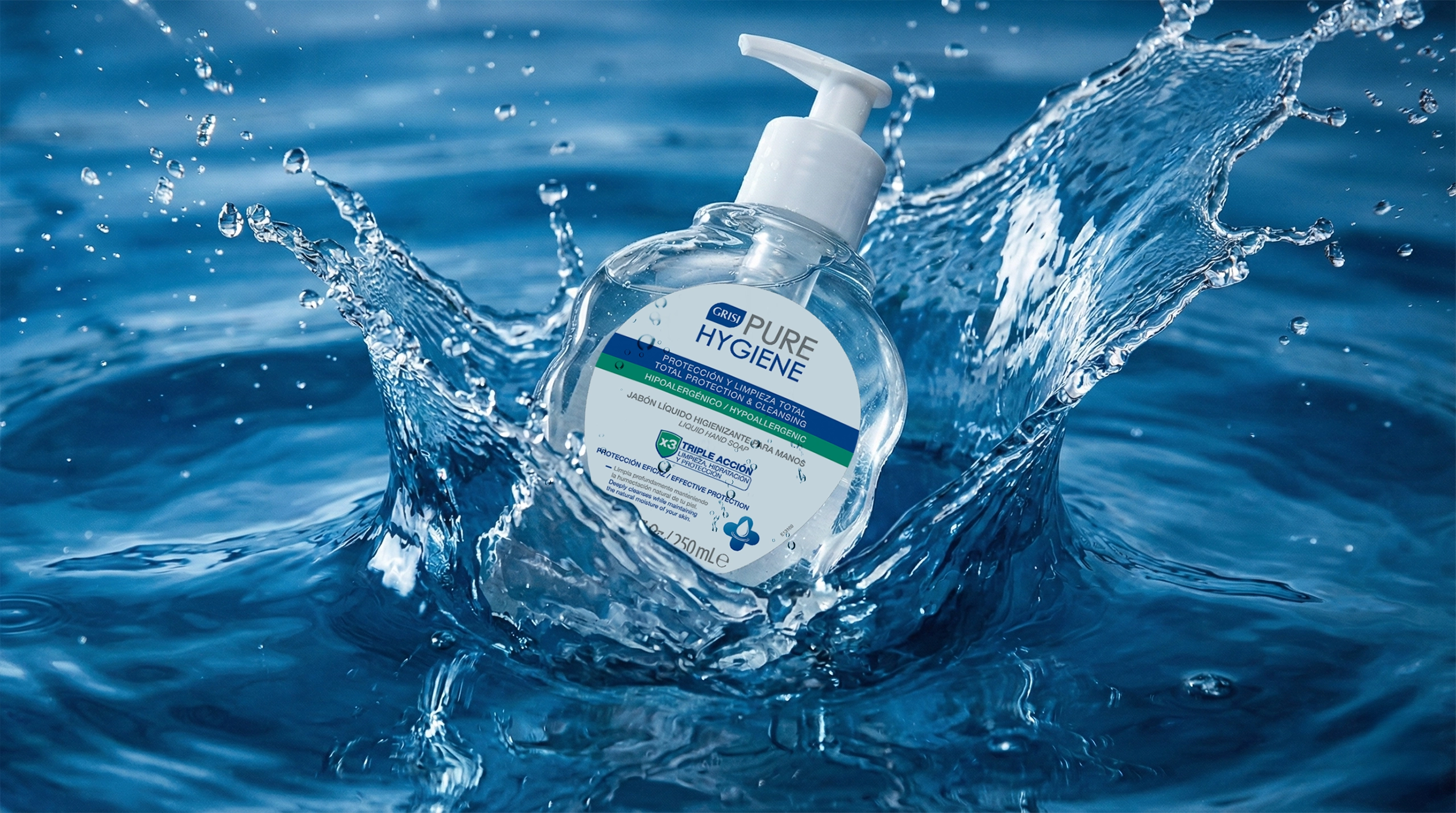 Para Grisi Pure Hygiene, Injerto desarrolló el sistema visual de empaque desde cero, adaptado a los estándares y requerimientos del mercado europeo. El proyecto implicó construir una arquitectura clara de información y una expresión visual capaz de comunicar eficacia, confianza y claridad en una categoría altamente regulada.